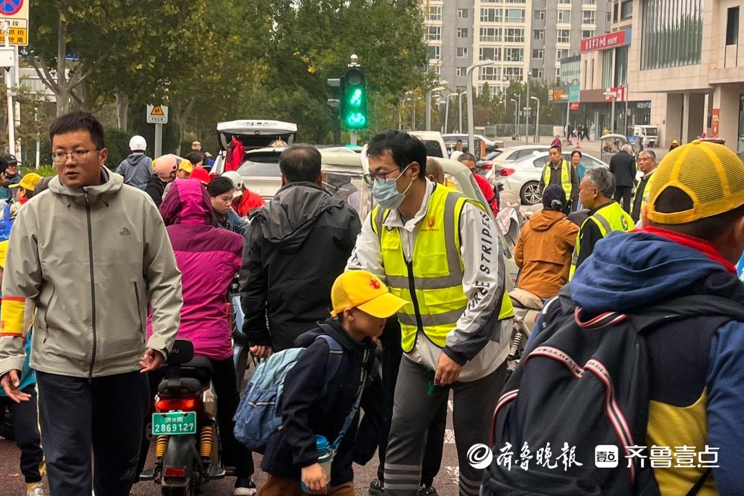 为保障学生出行安全,济南市市中区育秀小学精心规划“300米儿童友好道路”家校协同执勤机制。上下学时段,老师与家长通过常态化轮岗执勤,以家校共育之力为学生安全护航。