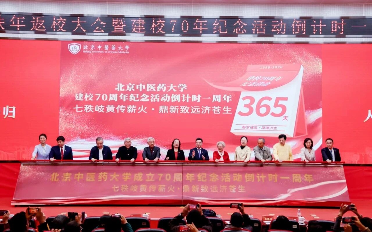 10月18日,北京中医药大学良乡校区内人头攒动,秩年40年、30年、20年、10年返校校友及师生代表近600人回到了母校。当日,北京中医药大学举办2025年校友秩年返校大会暨建校70年纪念活动倒计时一周年启动仪式。会上,该校发布建校七十周年一号公告,向全体师生员工、海内外校友和长期关心支持学校发展的各界人士,发出了共赴一场忆往昔、话今朝、瞻未来、谋发展,同庆学校七十华诞的盛大邀约。