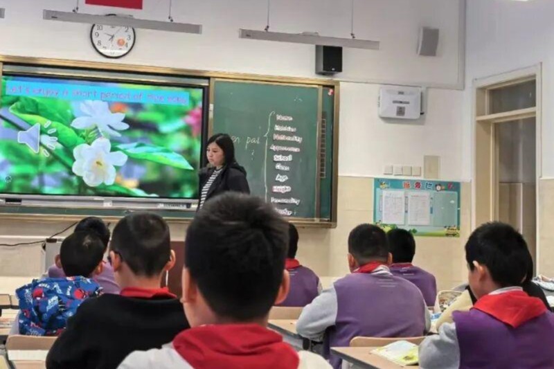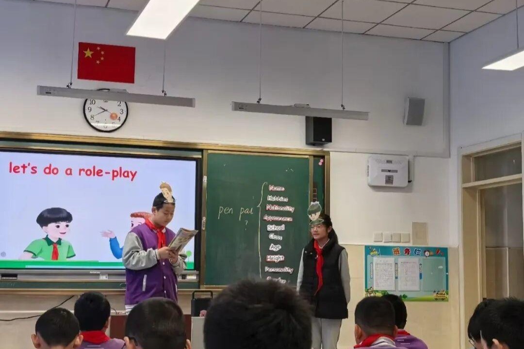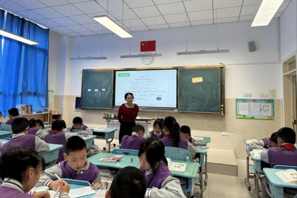 张莹莹的英语课《Unit4 Part A Let’s try & Let’s talk》,以情境化教学贯穿 “三段六环”:用卡通图片创设 “周末计划” 场景导入课程,帮助学生快速进入学习状态;接着通过 “听录音填空”“同桌对话练习” 等环节,让学生掌握 “ What are you going to do? ” 等核心句型;最后以小组合作展示收尾,每组派代表用英语分享自己的周末计划,课堂氛围活跃,学生参与度高,充分体现了英语学科 “听说优先” 的教学特色。