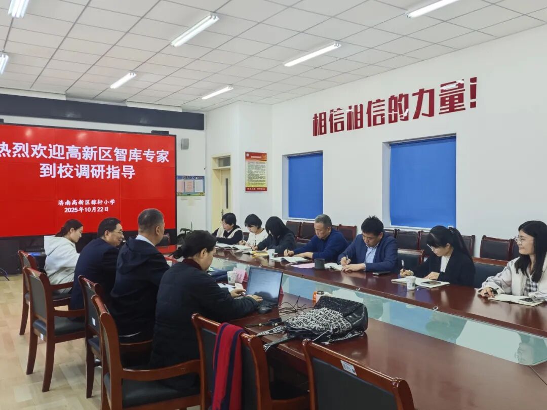 10月22日,济南高新区教育智库专家团队走进济南高新区稼轩小学,开展教学调研指导活动。此次调研以落实新课程标准为核心,通过深入课堂听课、集中座谈研讨、校园实地观察等形式,全面了解学校“三段六环”课堂教学模式践行情况与 “新六艺” 课程体系建设进展,为学校优化教学、打造高质量教学体系精准把脉,提供专业指导。