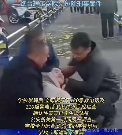 烟台理工学院学生坠楼身亡,排除刑事案件。学校报警并配合调查,通知家属,做好善后。