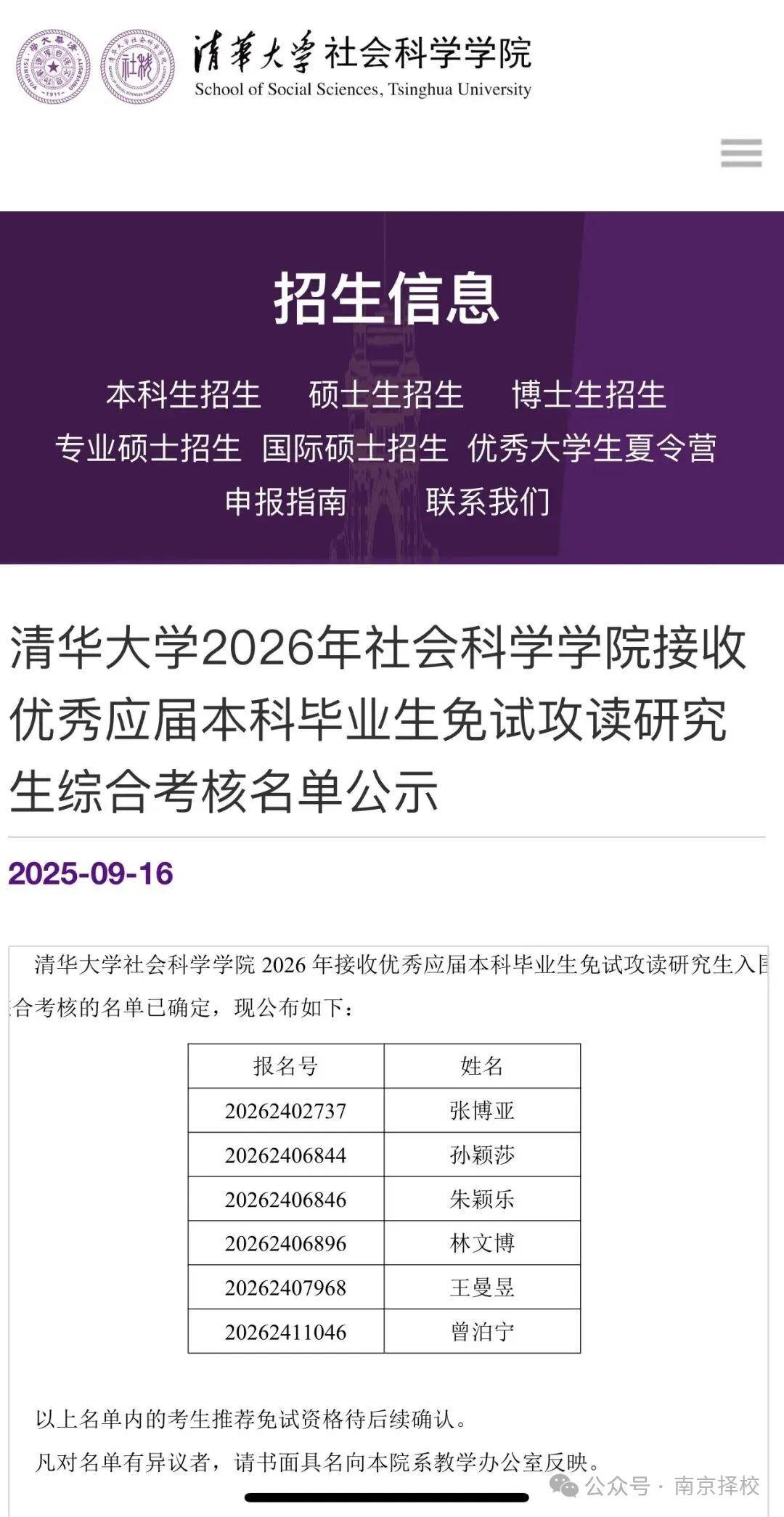 据此前报道,9月16日,清华大学社会科学学院对接收优秀应届本科毕业生免试攻读研究生综合考核名单进行公示,中国乒乓球队运动员孙颖莎、王曼昱榜上有名。