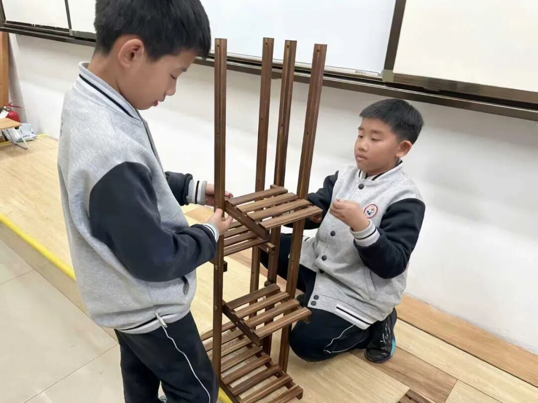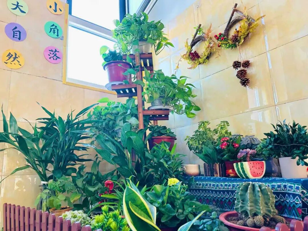 六年级(1)班的植物角,从搭建到照料全是学生的功劳。李珂买回花架和绿植后,把零件、说明书往讲台一放:“想当‘植物园长’的组队试试。”几个孩子凑过来研究,不仅把花架装稳,还自发分工——有人记植物的浇水周期,有人带自家绿植来添新,甚至画了“成长日记”贴在旁。如今小园长们蹲在植物角拨弄叶片,比老师照料得还尽心。