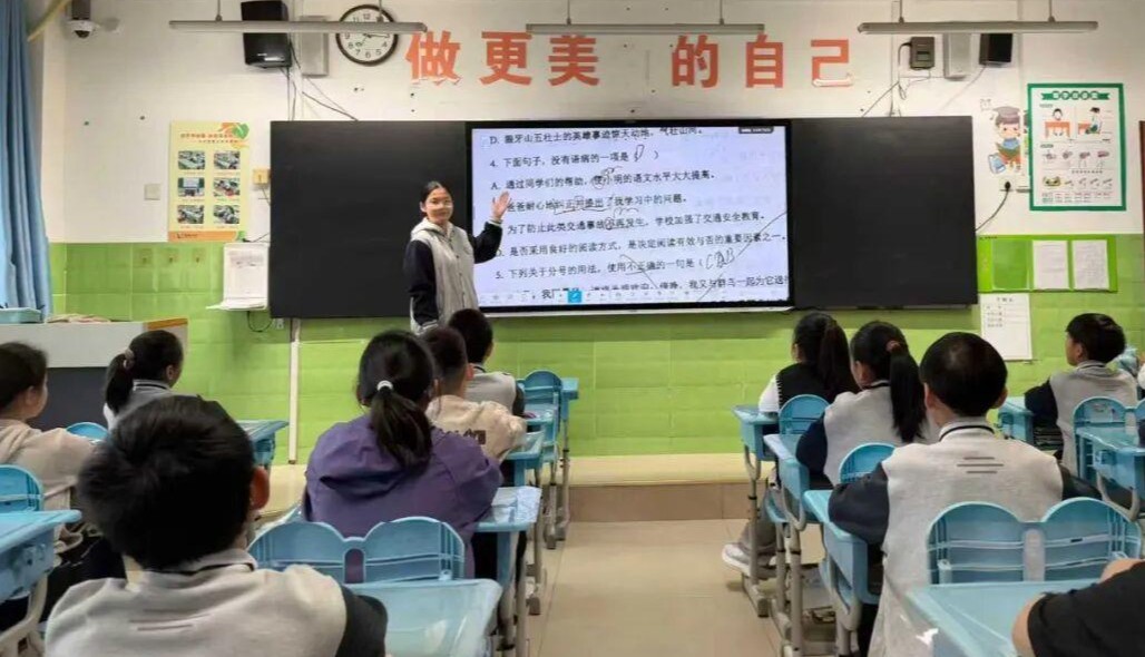 课堂上更敢放权,简单知识点直接请“小老师”上台讲。有的模仿她的语气提问,有的画图辅助,甚至有人提前梳理易错点提醒大家“别掉坑”。她只在“小老师”讲不全时补充,遇争议题就当“裁判”引导讨论。慢慢的,课堂气氛活了,连内向的孩子也敢报名当小老师。