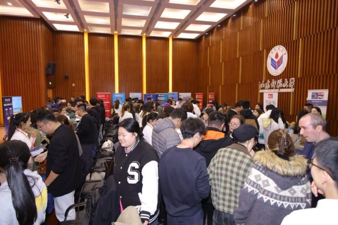 教育部主办高校交流会于山东师范大学举行,32所国外院校参会,探讨国际化人才培养模式,学生与院校代表交流留学细节。
